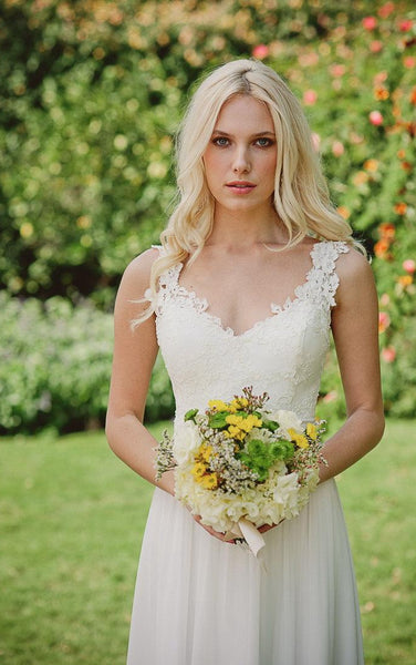 The Long Chiffon Lace Weddig Dress With Beading Flower is the yin, to your yang. You've found what you're looking for.