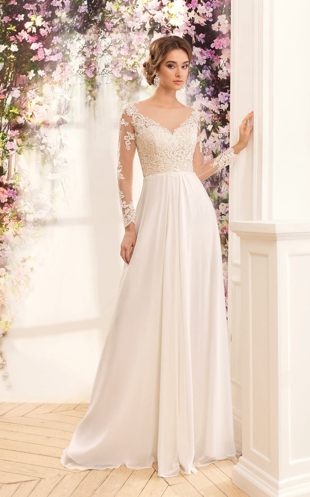 The Long-Sleeve Appliqued Pleats Floor-Length A-Line Lace Dress-714440 destined to impress, and priced at only $171.89, for a limited time.