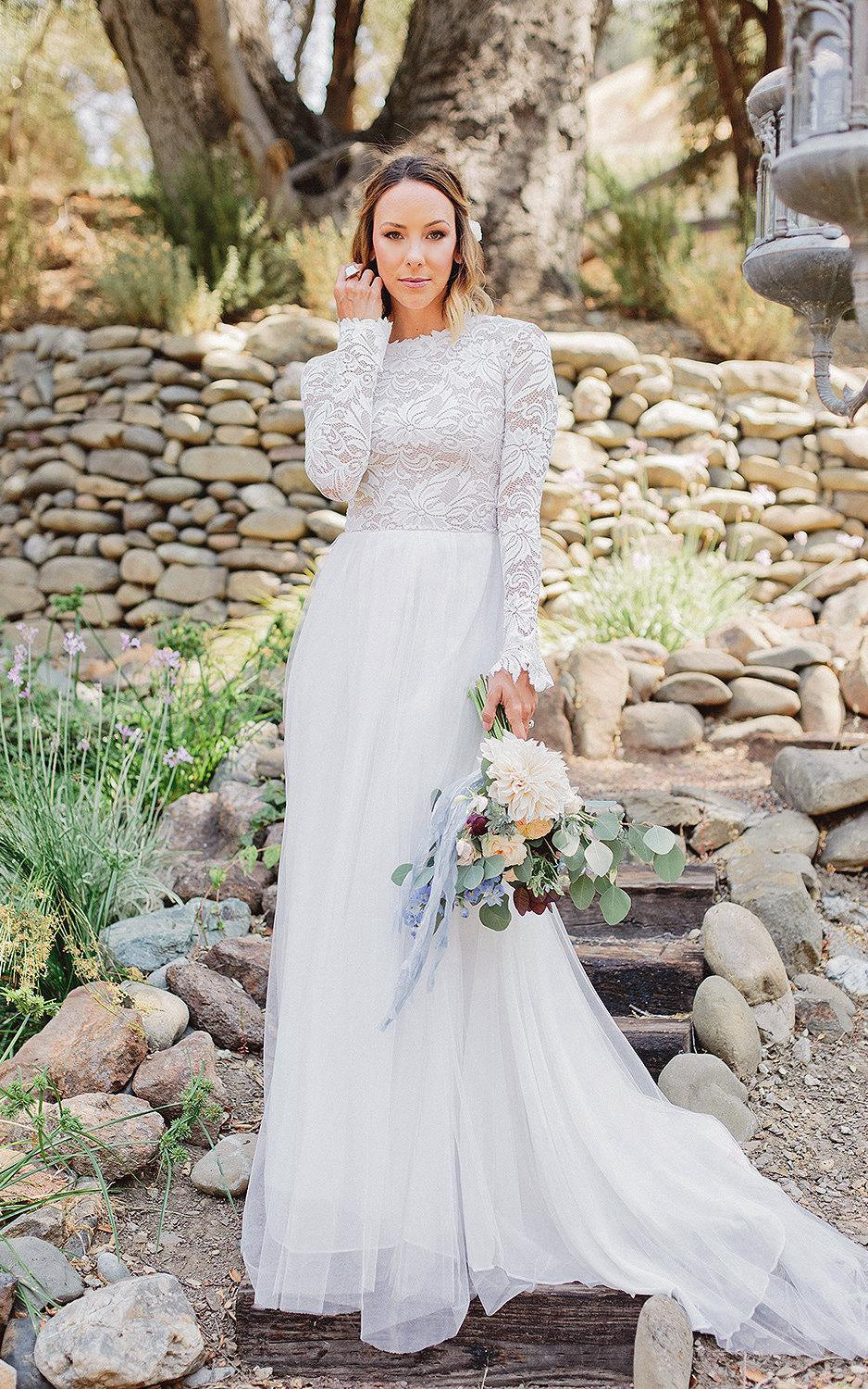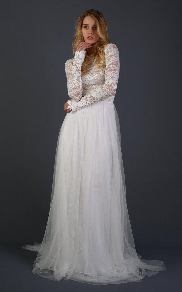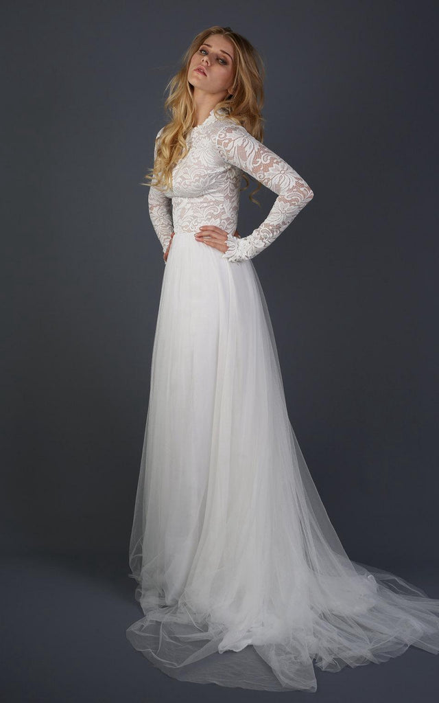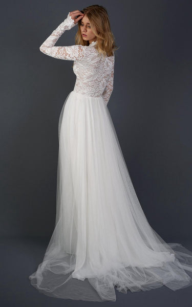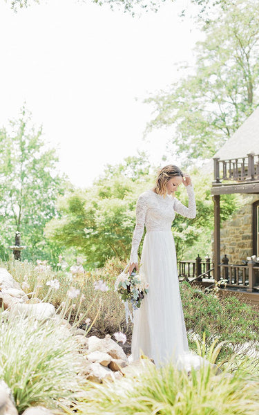 Long Sleeve Chiffon Tulle Lace Weddig Dress