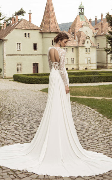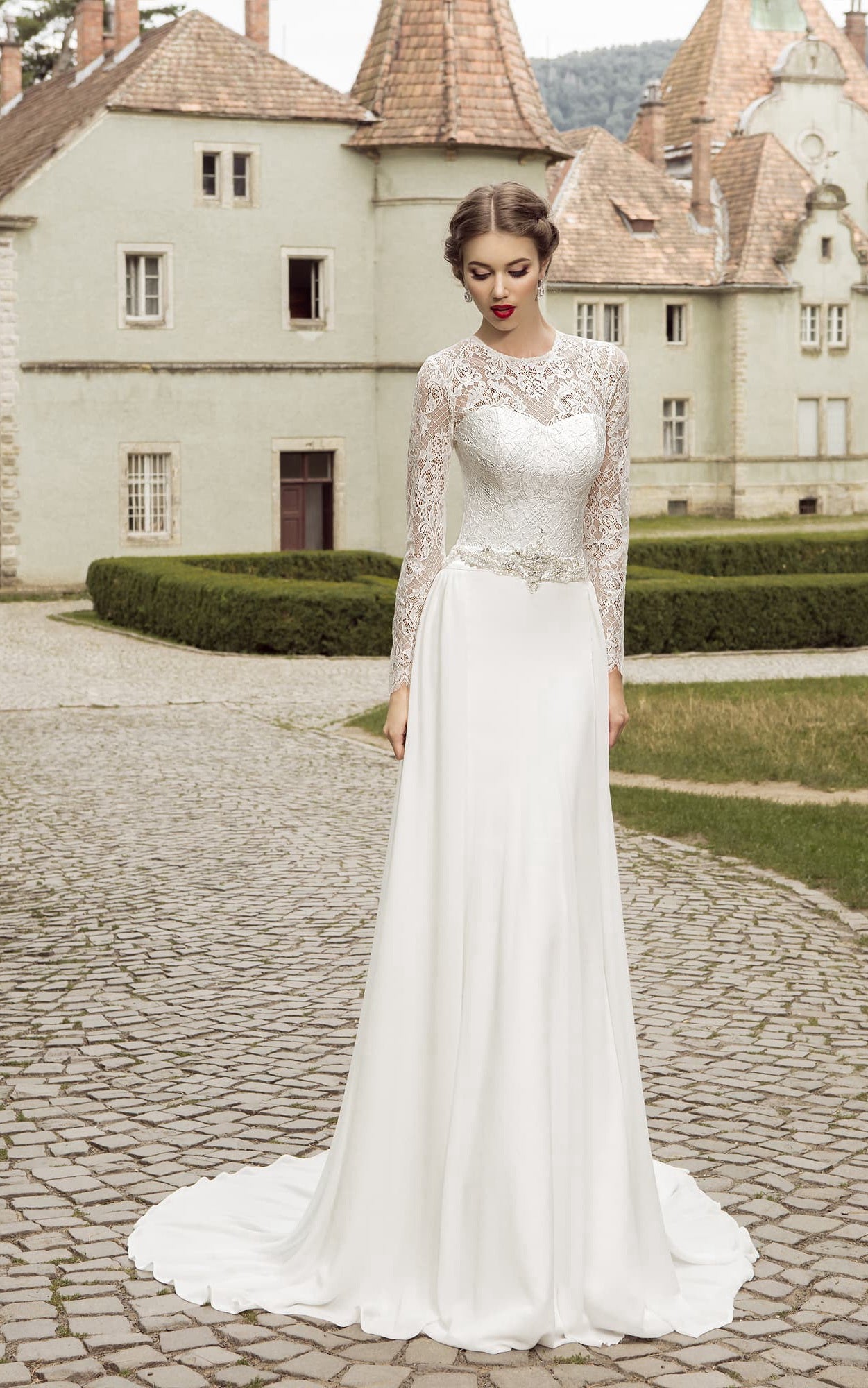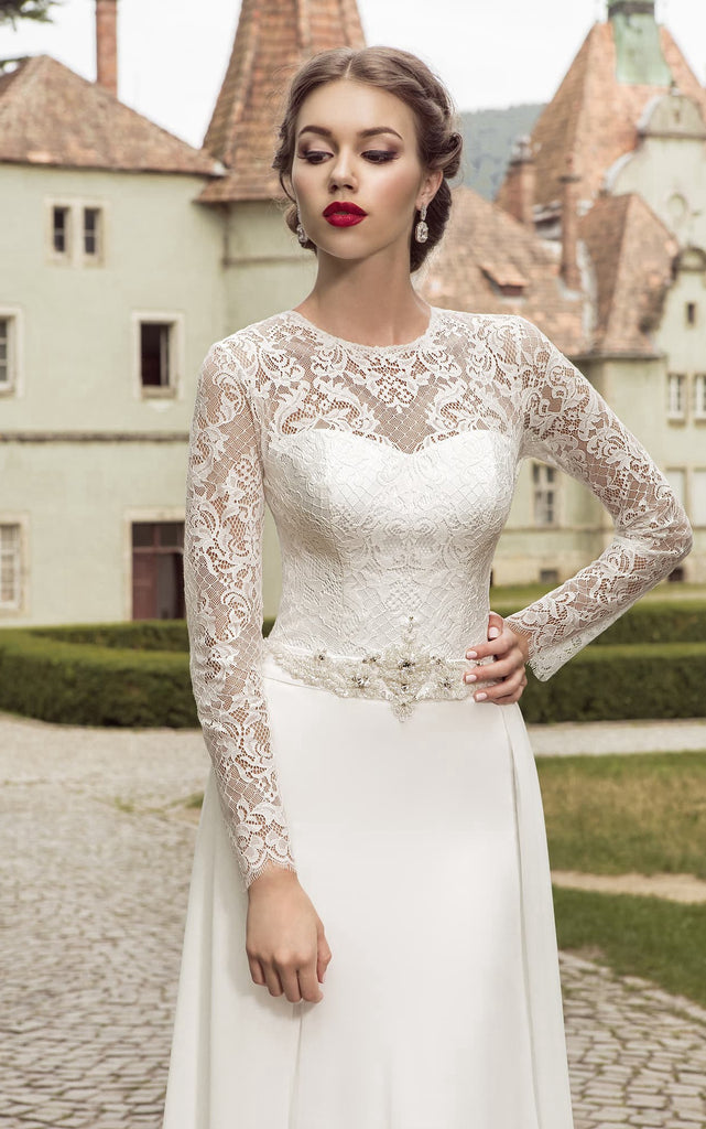 Long Sleeve Lace-up Lace Top Dress With Crystal Detailing-714068
