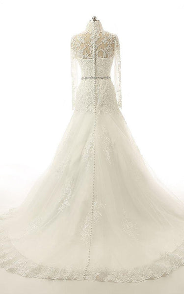 The Mermaid High Neck Long Sleeve Lace Dress With Beading is far and away, one of our most popular items. People can't seem to get enough of it.