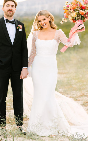 Imagine if you could be satisfied and content with your purchase. That can very much be your reality with the Mermaid Satin Simple Wedding Dress With Square Neckline And Long Sleeve-716572.
