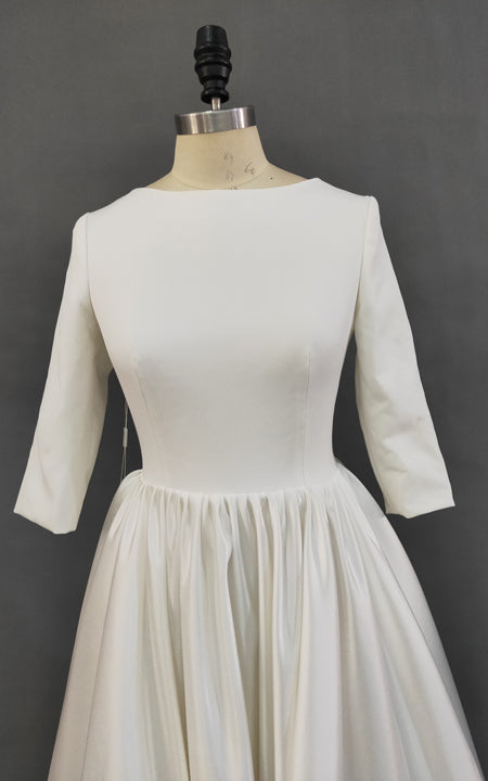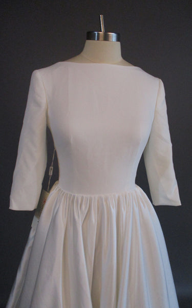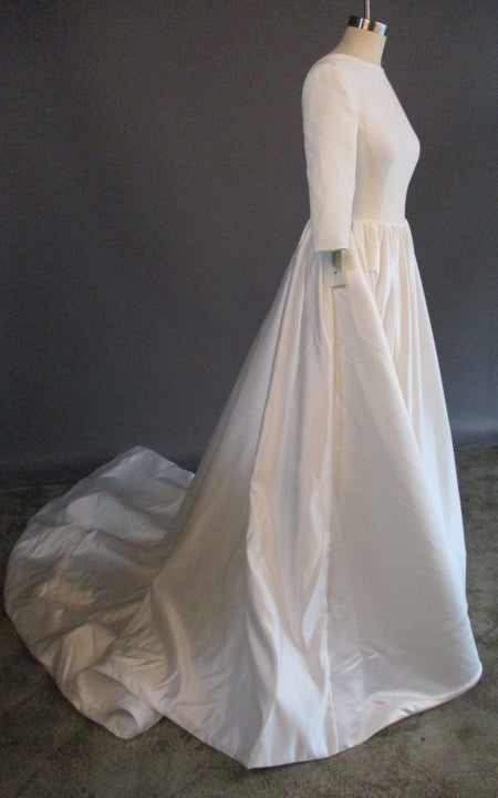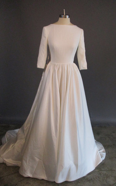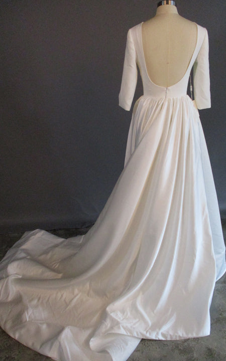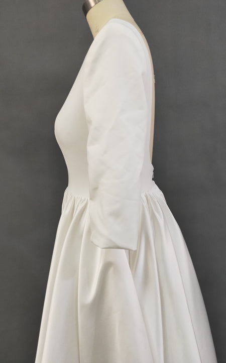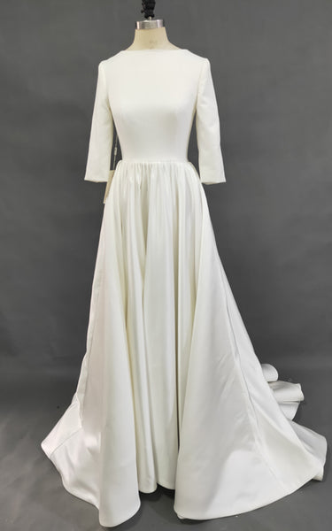 Modern Simple Long Sleeve A-Line Satin Wedding Dress With Open Back-ZET_711539