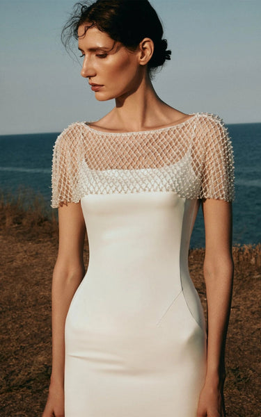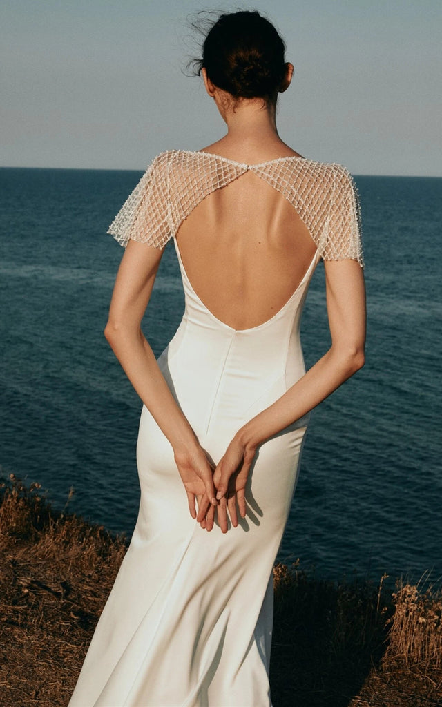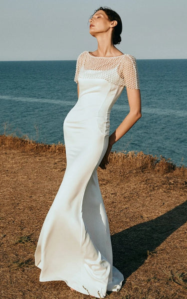Modern Mermaid Square Neck Satin Wedding Dress-716394