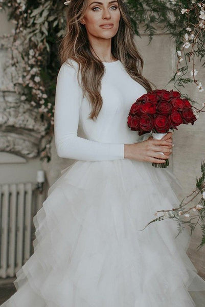 Imagine if you could be satisfied and content with your purchase. That can very much be your reality with the Modern Spandex And Ruffle Organza Long Sleeve Low-V Back Wedding Dress-715736.