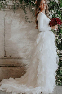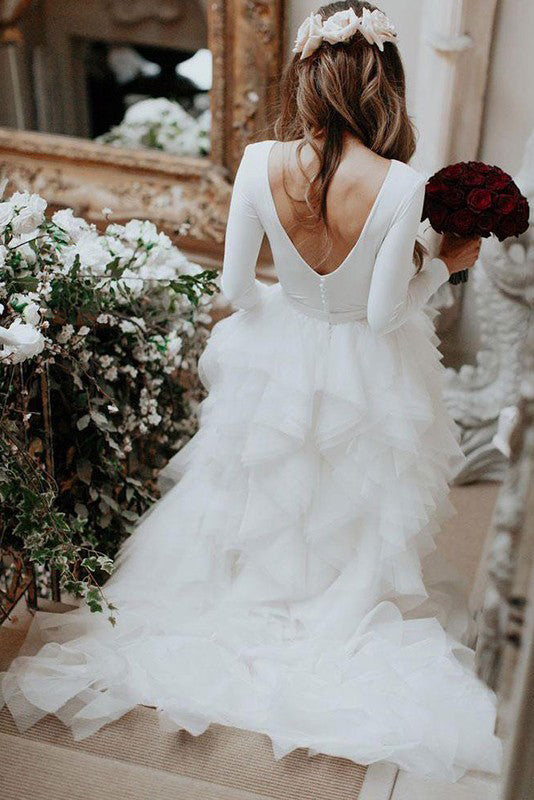 Modern Spandex And Ruffle Organza Long Sleeve Low-V Back Wedding Dress-715736
