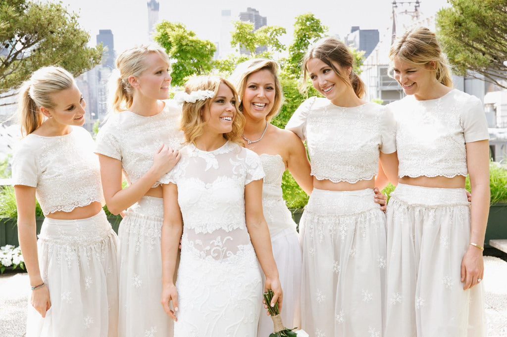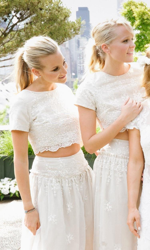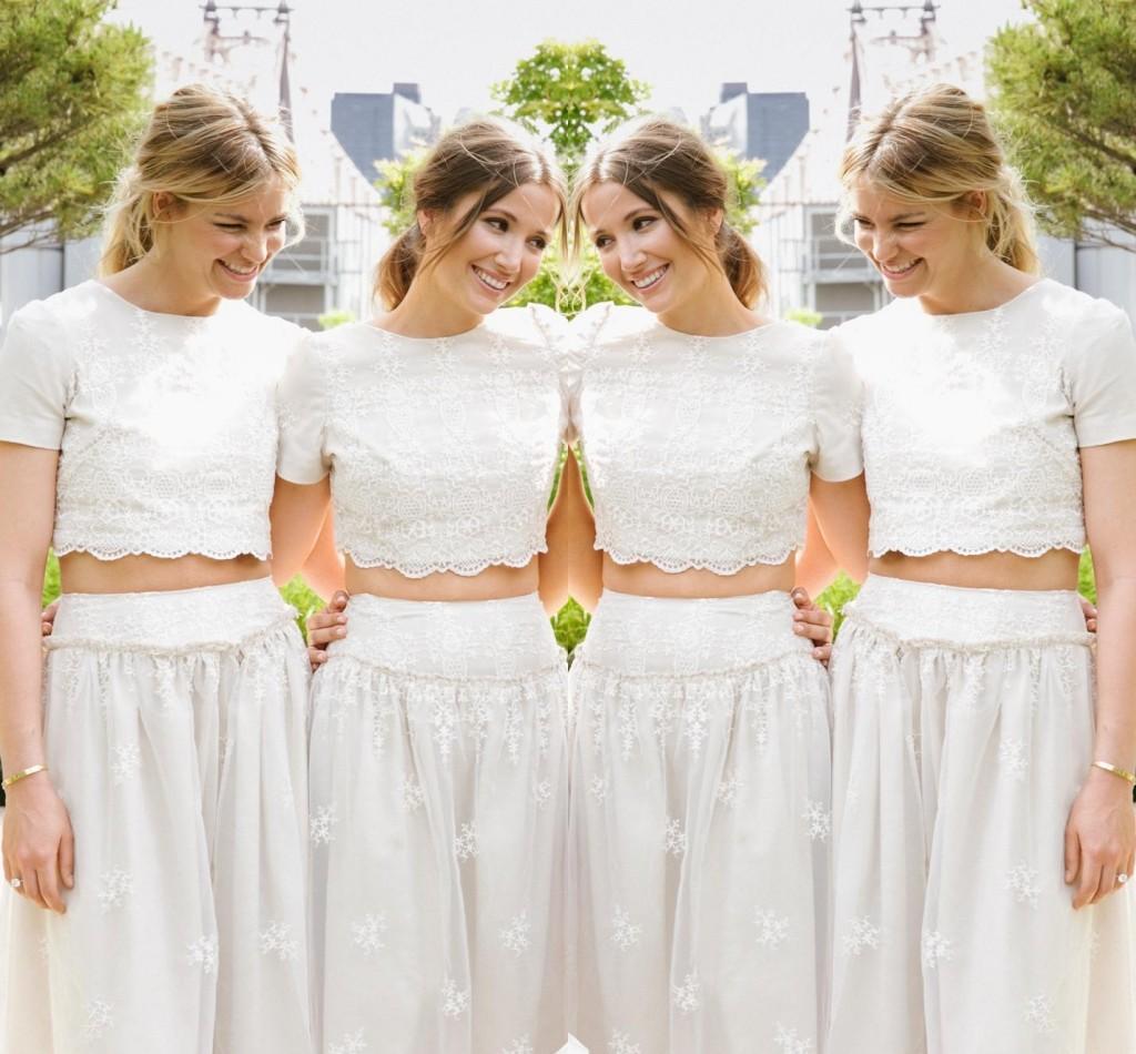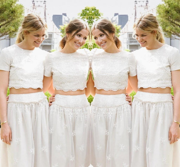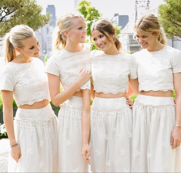 Modern White Two Piece A-line 2018 Bridesmaid Dress Lace Short Sleeve Jewel-326235