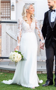 On the fence about this Modest Floral Bohemian Lace Top V-Neck Wedding Dress Garden Ourdoor Mature Elegant Illusion Sleeves Sweep Train Bridal Gown? Don't be. Let our satisfaction guarantee address your concerns.