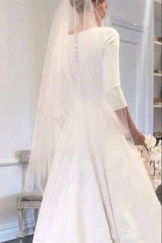 Modest Satin A-line 3/4 Sleeve Wedding Dress with Full Covered Back