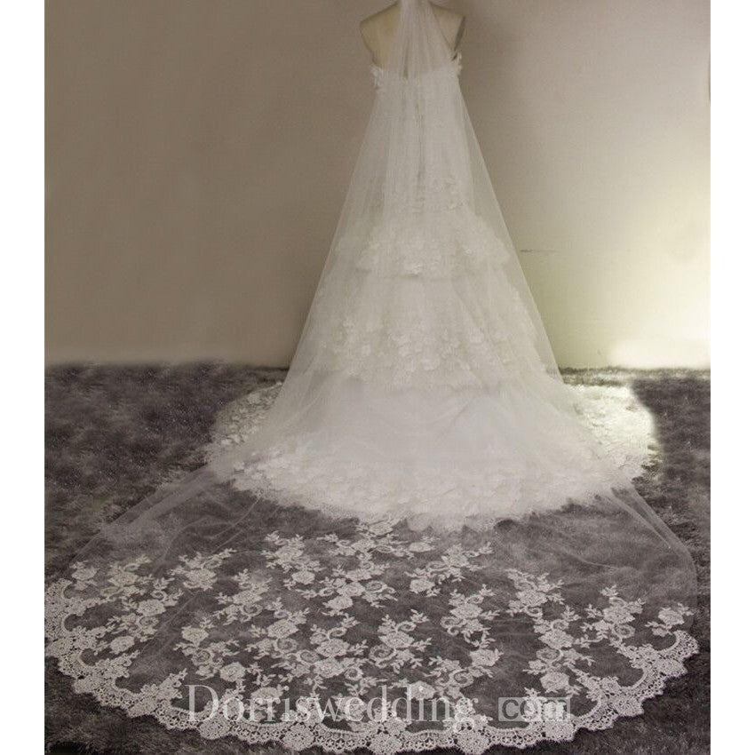 New Korean Style Retro Corded Lace Applique Long Tail Trailing Soft Bridal Veil