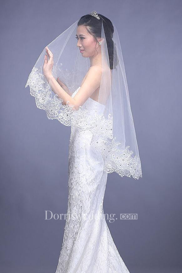 New Style Beautiful Short Wedding Veil with Lace Edge and Beading