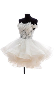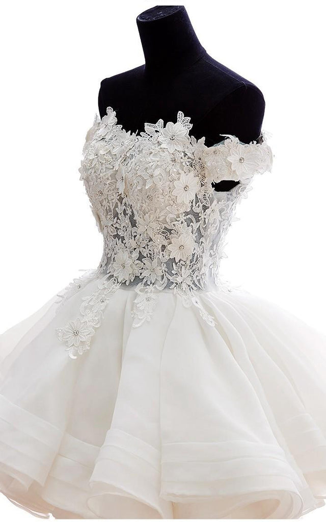 Off-The-Shoulder Zipper Lace Ball-Gown Princess Corset-Back Button Dress
