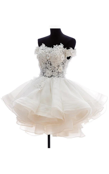 Off-The-Shoulder Zipper Lace Ball-Gown Princess Corset-Back Button Dress-714037