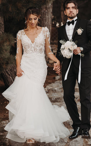 Every product is unique, just like you. If you're looking for a product that fits the mold of your life, the Organza Mermaid V-neck Simple Beach Wedding Dress With Appliques And Illusion Back-716580 is for you.