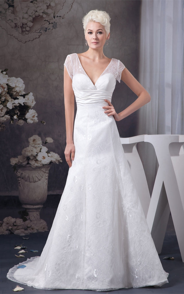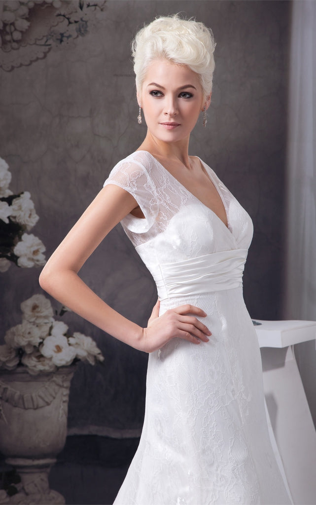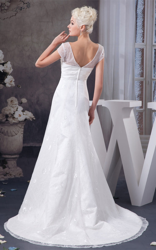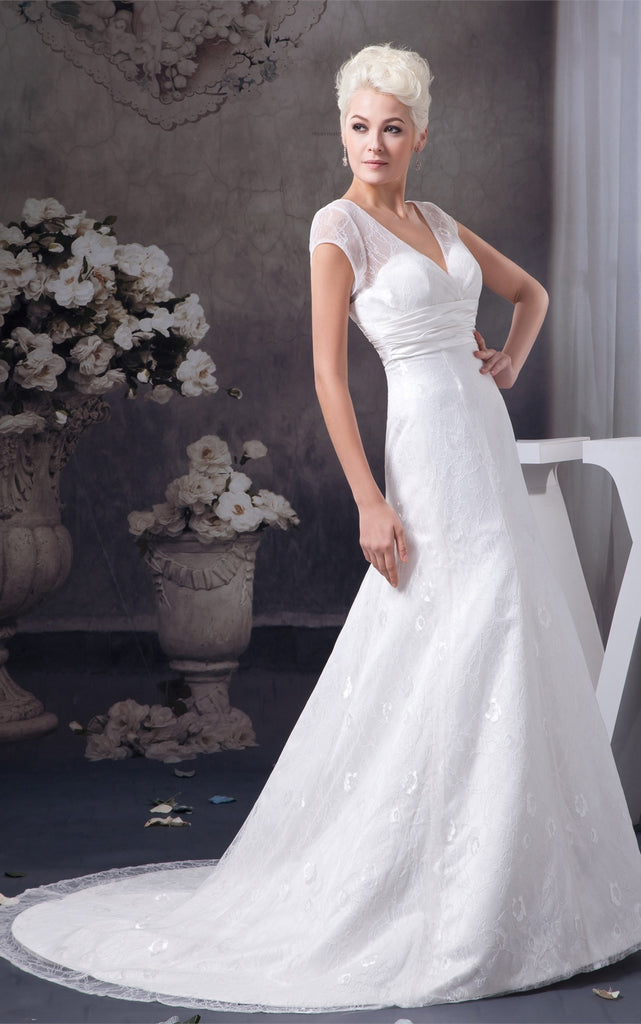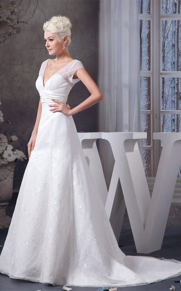 The Plunged Caped-Sleeve A-Line Gown with Appliques and Ruched Waist-GC_707293 is far and away, one of our most popular items. People can't seem to get enough of it.