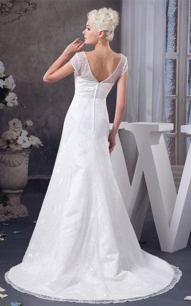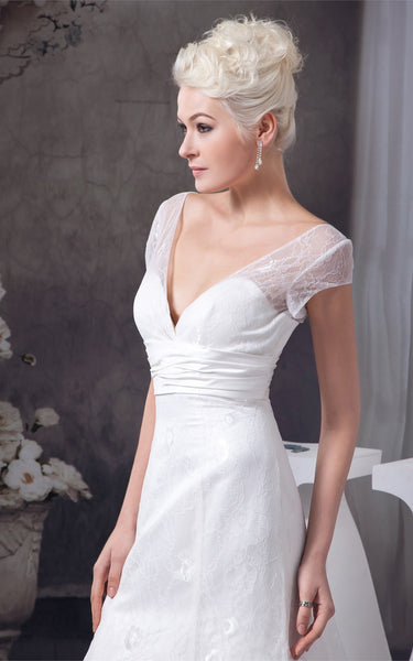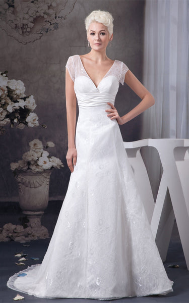 Plunged Caped-Sleeve A-Line Gown with Appliques and Ruched Waist-GC_707293