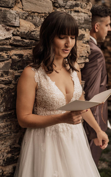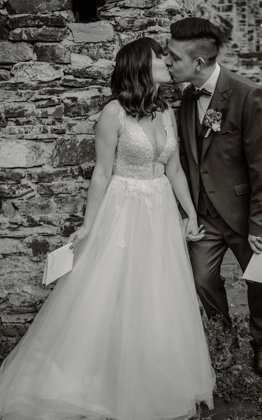 Plunging Neckline A-Line Lace Elegant Wedding Dress Sleeveless Appliques