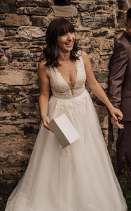 Plunging Neckline A-Line Lace Elegant Wedding Dress Sleeveless Appliques-716595