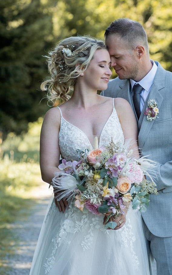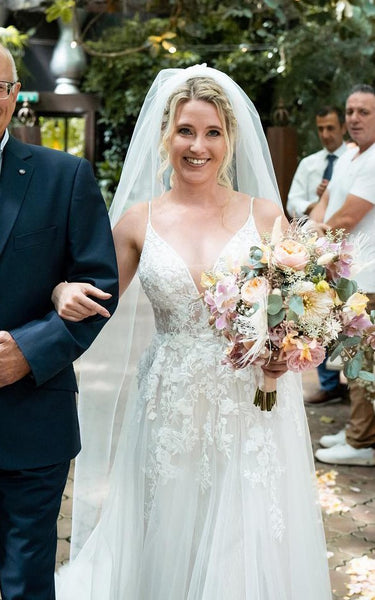 Plunging Neckline A-Line Tulle Sexy Wedding Dress Sleeveless Appliques-716592
