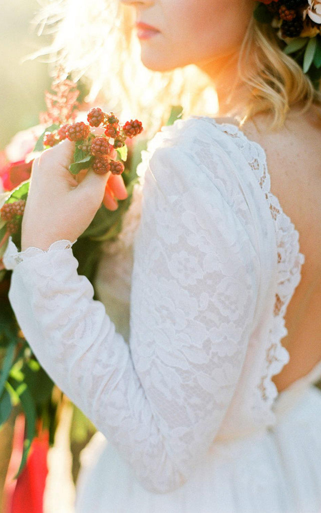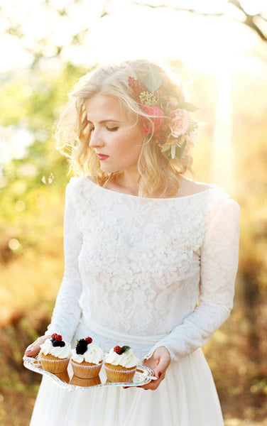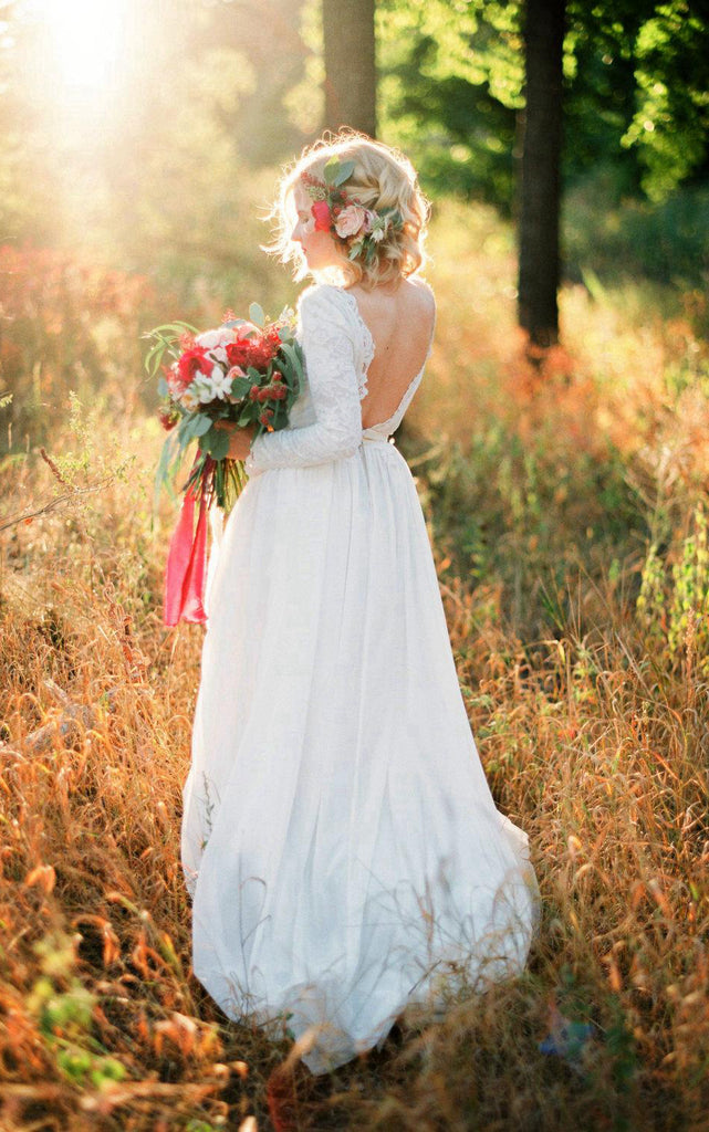 Romantic Chiffon Long A-Line Wedding Dress With Lace Bodice-ET_711221