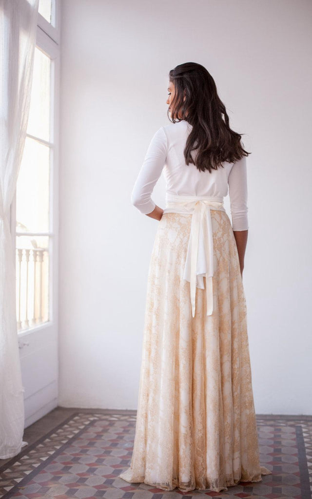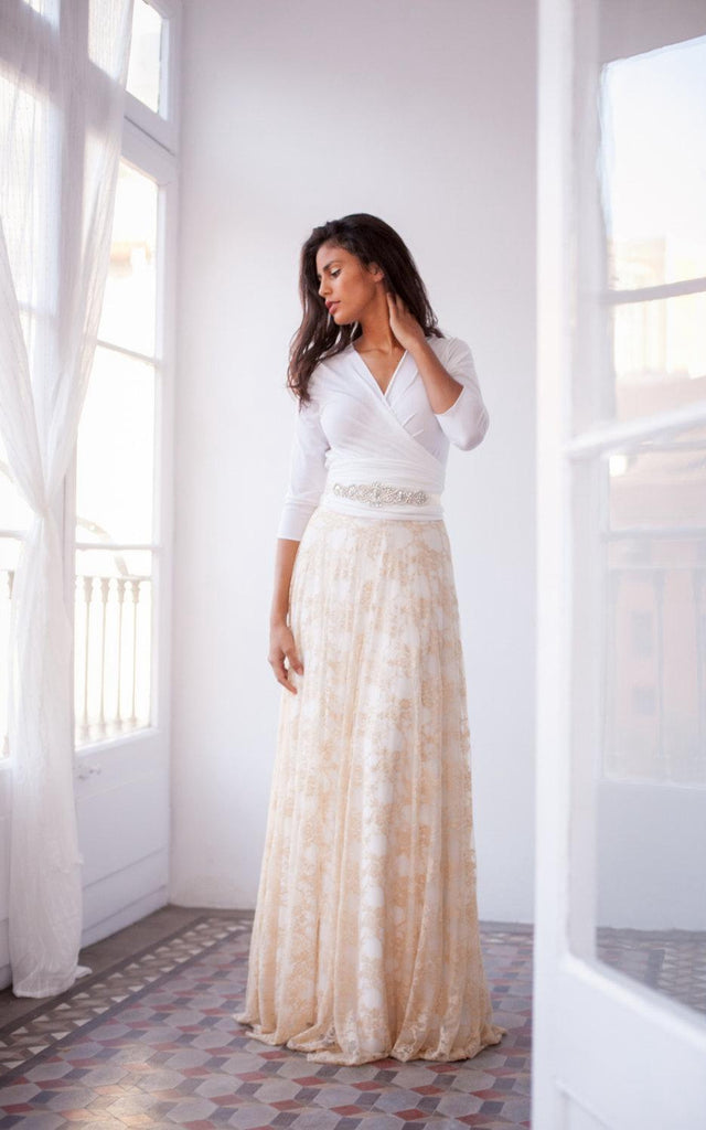 The Vintage Long Sleeve Golden Lace Lace Gown Dress With Sleeves-711754 is the yin, to your yang. You've found what you're looking for.