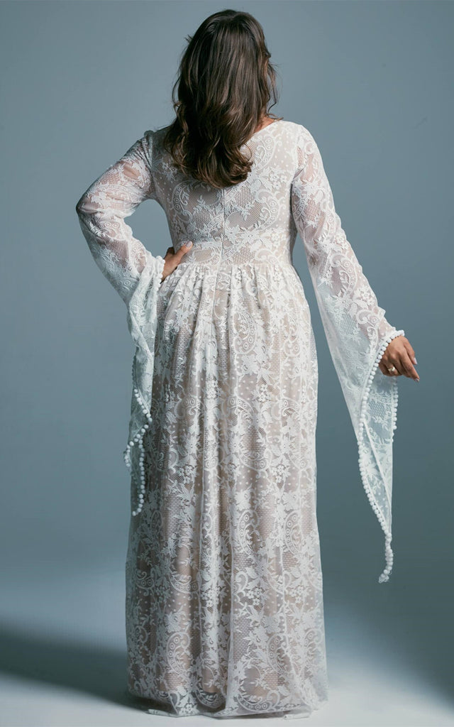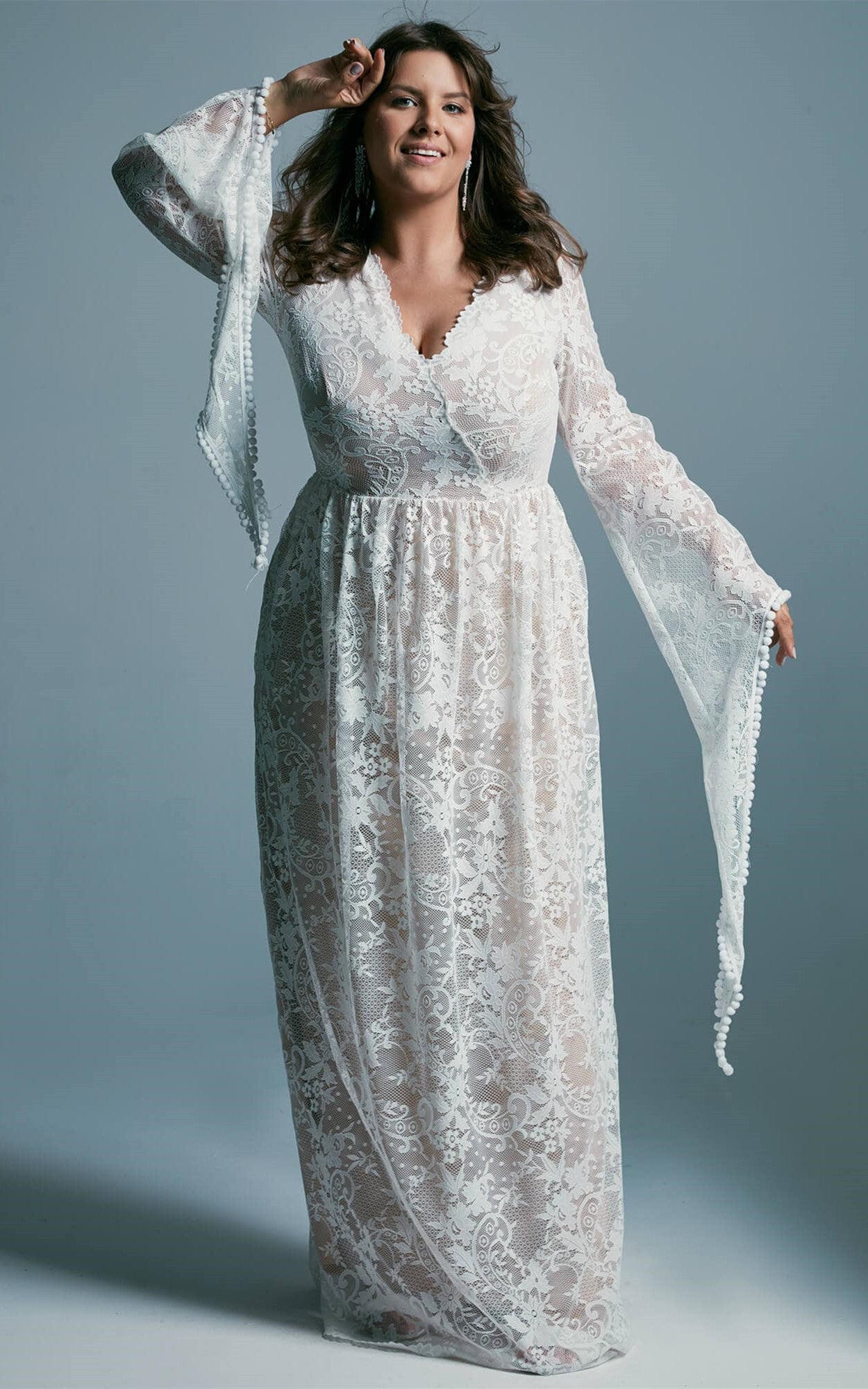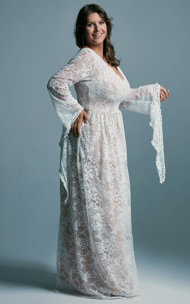 Romantic Plus Size A Line Lace Wedding Dress with Appliques-716149