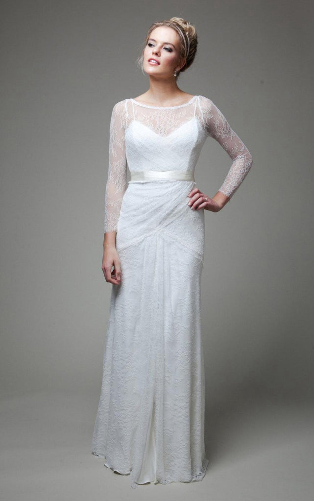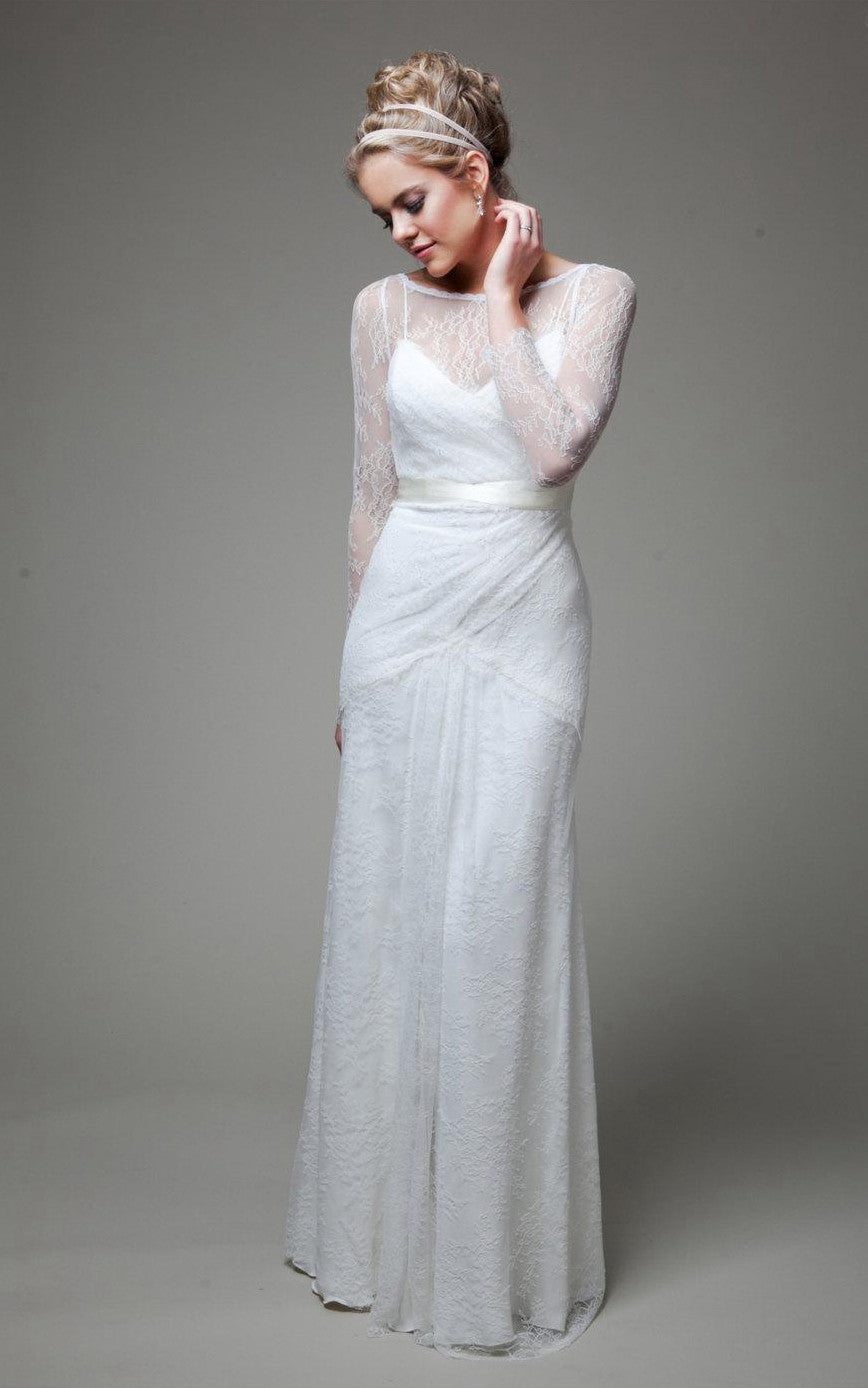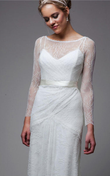 Rustic Vintage Elegant Boho Lace Sheath Wedding Dress Illusion Romantic Sleeved Backless Maxi Bridal Gown with Sash