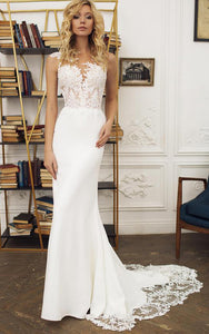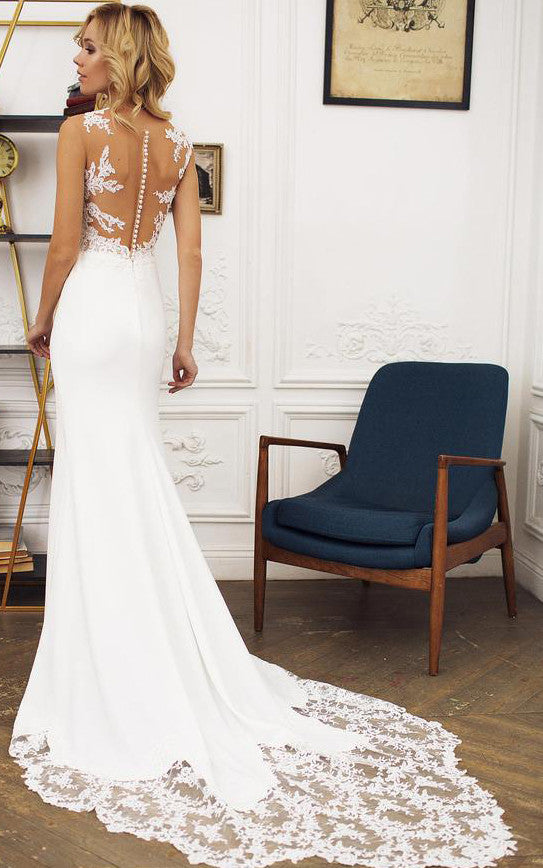 The Satin Lace Floor-length Court Train Mermaid Sleeveless Bohemian Wedding Dress-716007 is evocative, to say the least, but that's why you're drawn to it in the first place.