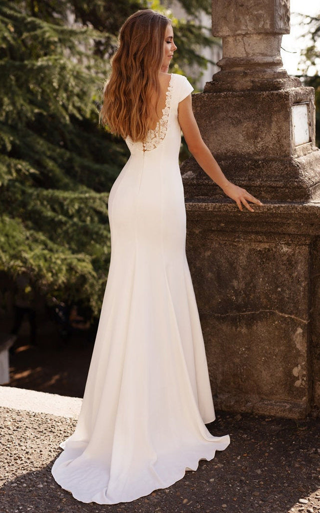 Imagine if you could be satisfied and content with your purchase. That can very much be your reality with the Satin Mermaid Romantic V-neck Wedding Dress With Open Back And Appliques-716559.