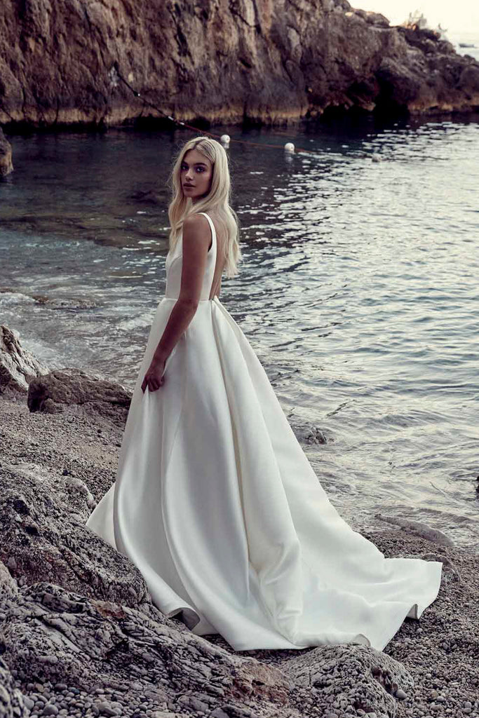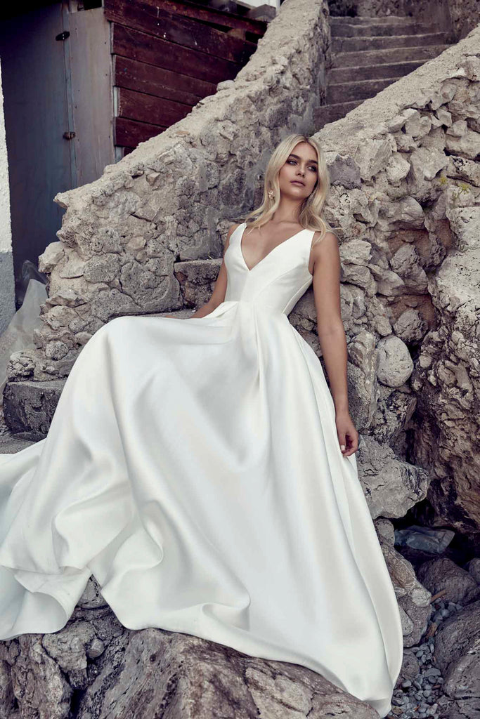 The Satin Plunging V-neck A-line Wedding Dress With Open Back-715747 is far and away, one of our most popular items. People can't seem to get enough of it.