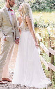 Sexy A-Line Plunging Neckline Spaghetti Chiffon Sequins Wedding Dress With Open Back