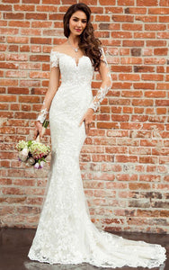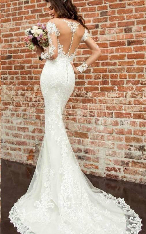 The Sexy Bateau Mermaid Floor-length Court Train 3/4 Length Sleeve Wedding Dress With Appliques-716019 is evocative, to say the least, but that's why you're drawn to it in the first place.