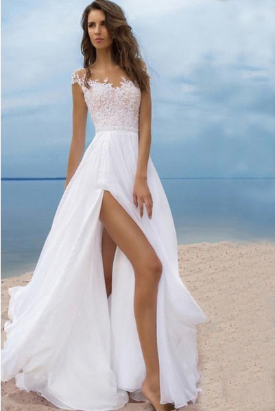 The Sexy Beach Chiffon A-line Scoop-neck Cap-sleeve Slit Front Dress-715622 is evocative, to say the least, but that's why you're drawn to it in the first place.