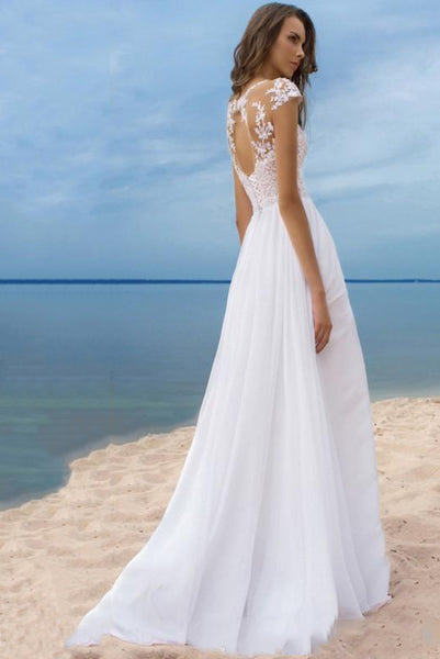 Sexy Beach Chiffon A-line Scoop-neck Cap-sleeve Slit Front Dress-715622