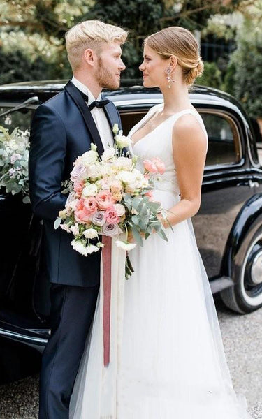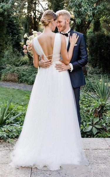 Sexy Elopement Beach Country A-Line Plunging Wedding Dress Romantic Garden Forest Destination Tulle Maxi Bridal Gown