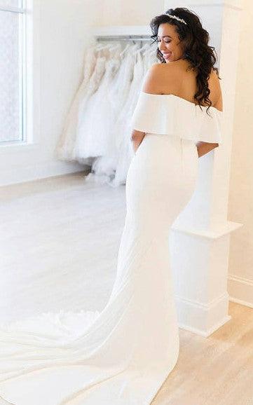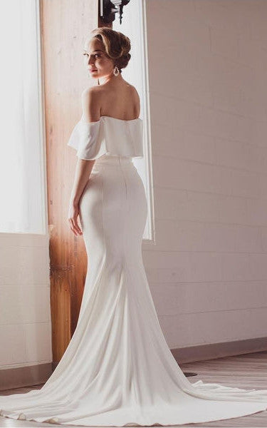 Sexy Mermaid Satin Off-the-shoulder Wedding Dress With Open Back And Court Train-716555