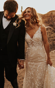 The Sexy Mermaid V-neck Lace Sleeveless Wedding Dress with Sweep Train Simple Elegant Ethereal Country Garden is far and away, one of our most popular items. People can't seem to get enough of it.