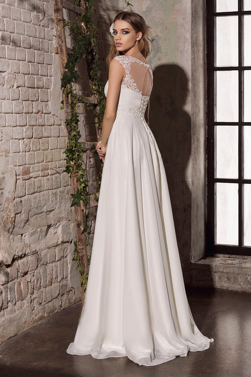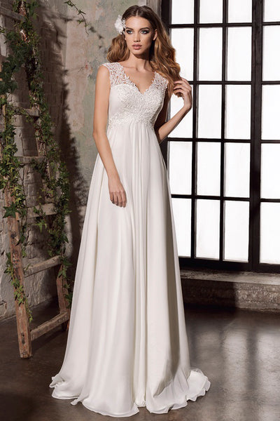 Sheath Keyhole Elegant Empire Lace Appliqued Bridal Gown With Corset Back-715733