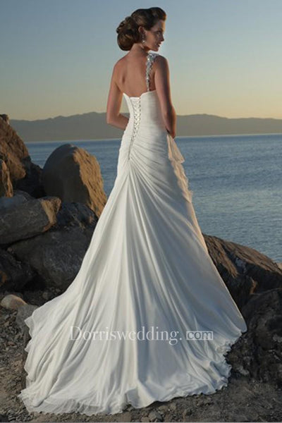 Imagine if you could be satisfied and content with your purchase. That can very much be your reality with the sheath One Shoulder Chiffon Wedding Dress.