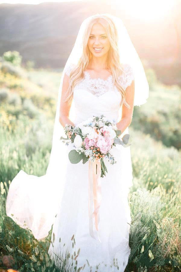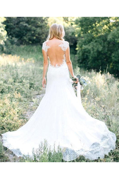 Sheer Crew Neck Garden Mermaid Boho Lace Bodice Appliques Backless Elegant Bridal Gown-715328