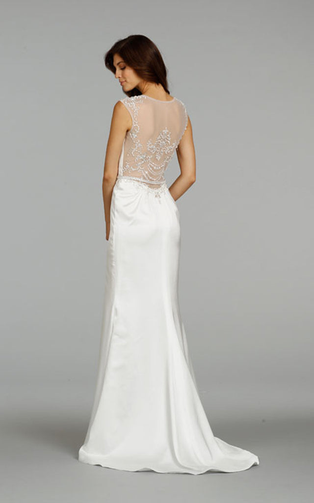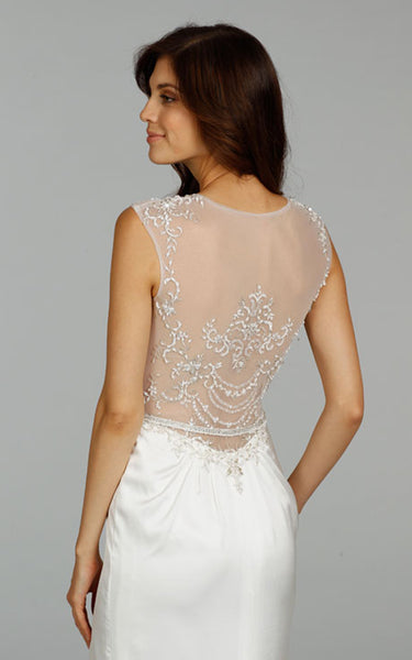 Gorgeous Cap Sleeve Charmeuse Dress With Beaded Embroidered Sheer Back - 702360