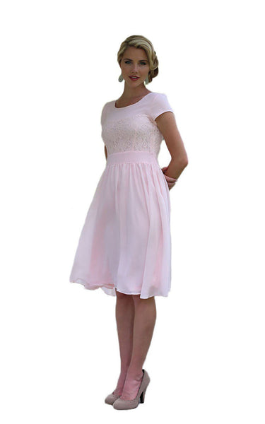 Short Sleeve Knee-length Dress With Lace Embellishment-309337