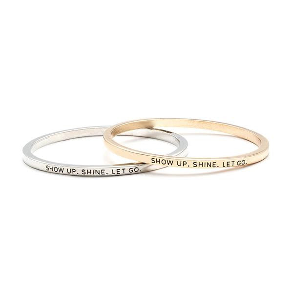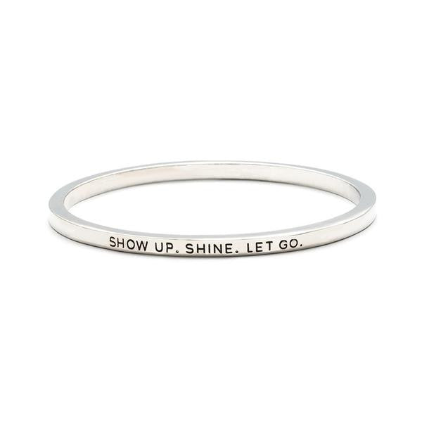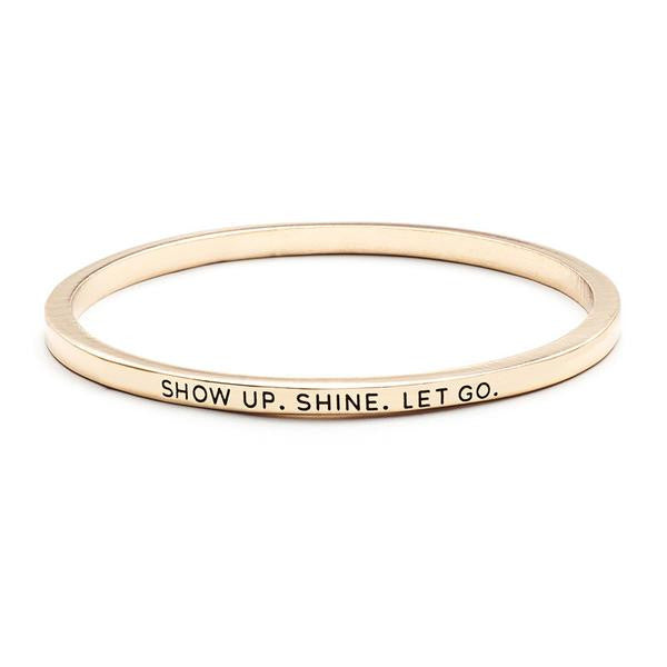 The Show Up Shine Bangle is a great accessory to make a statement. This bangle will bring meaning to your outfit and will demonstrate that you are ready to shine! Makes a great inspirational gift for any occasion!