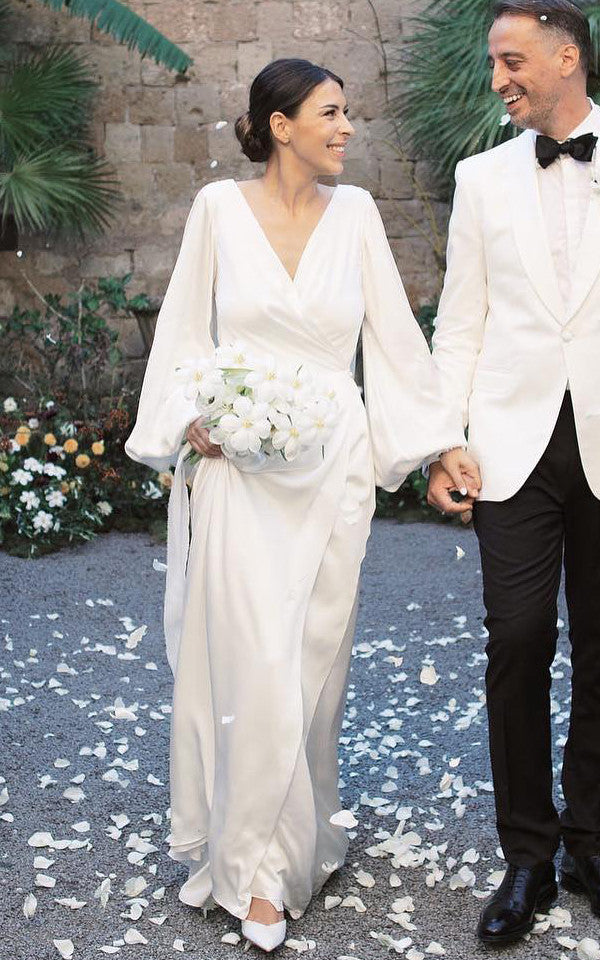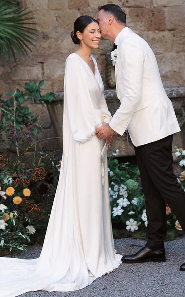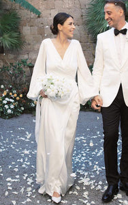 Simple A-Line Charmeuse Wedding Dress With Low-V Back And V-neck-716612