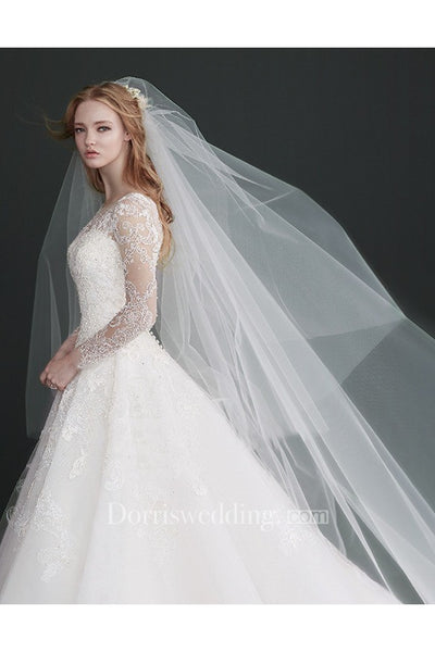 Simple Double Layer Ivory Bridal Wedding Veil With Insert Comb Long Train
