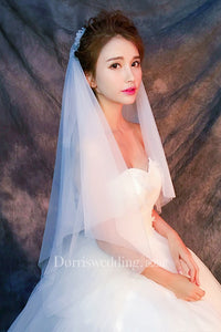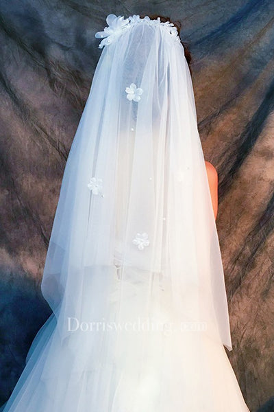 Every product is unique, just like you. If you're looking for a product that fits the mold of your life, the Simple Fingertip Short Tulle Wedding Veil with Flower Appliques is for you.
