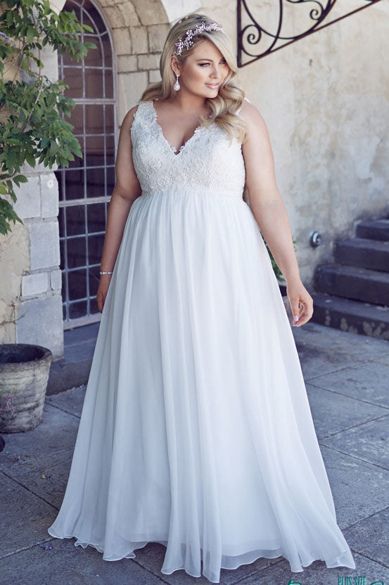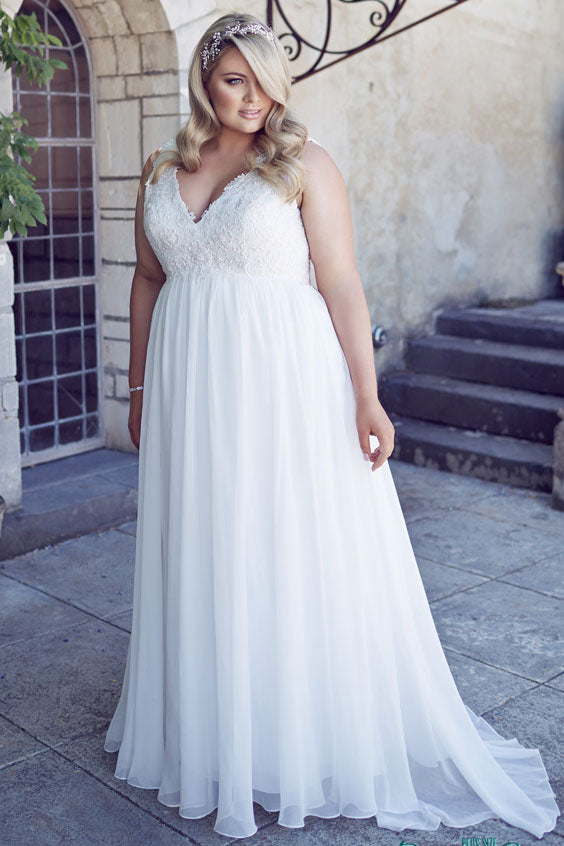 Simple Floor-length V-Neck Empire Chiffon Bridal Gown-MK_705600
