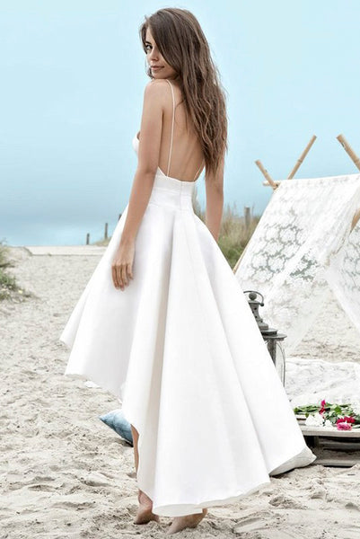 Simple High-low Beach Wedding Dress With Spaghetti Straps And Ruching
