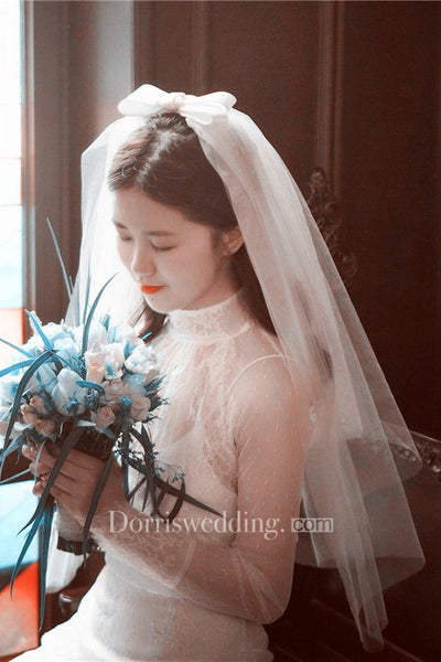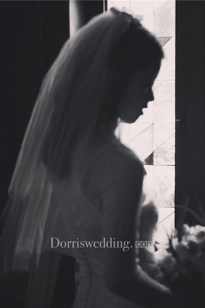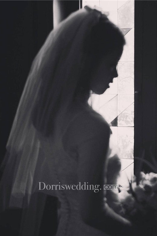 Simple Retro Wedding Veil With Insert Comb Bride Veil For Travel Shot