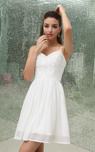 Simple Sleeveless Chiffon Mini Dress With Spaghetti Straps-GC_707610
